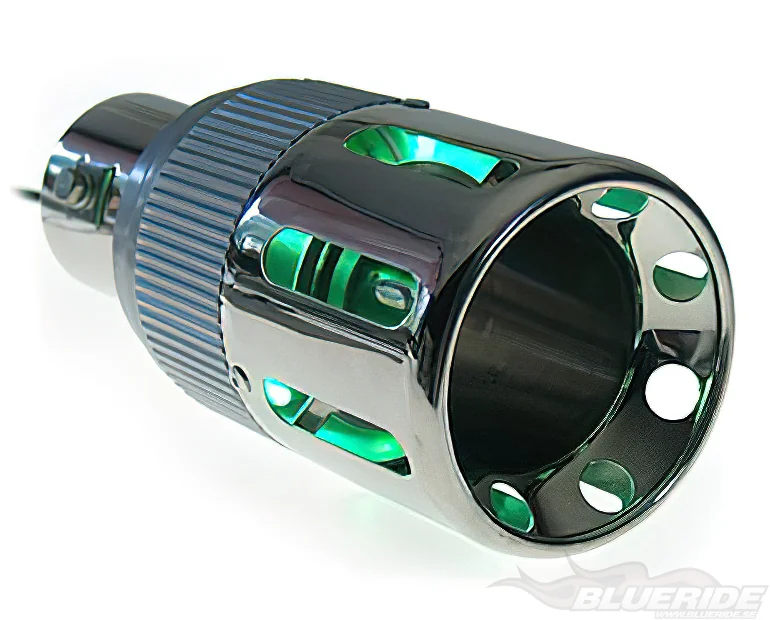 Massiv kromad och aluminiumfärgad avgasförlängare med 6 st LED-dioder som lyser med grönt ljus. Detta ger bilen ett riktigt snyggt och sportigare utseende.