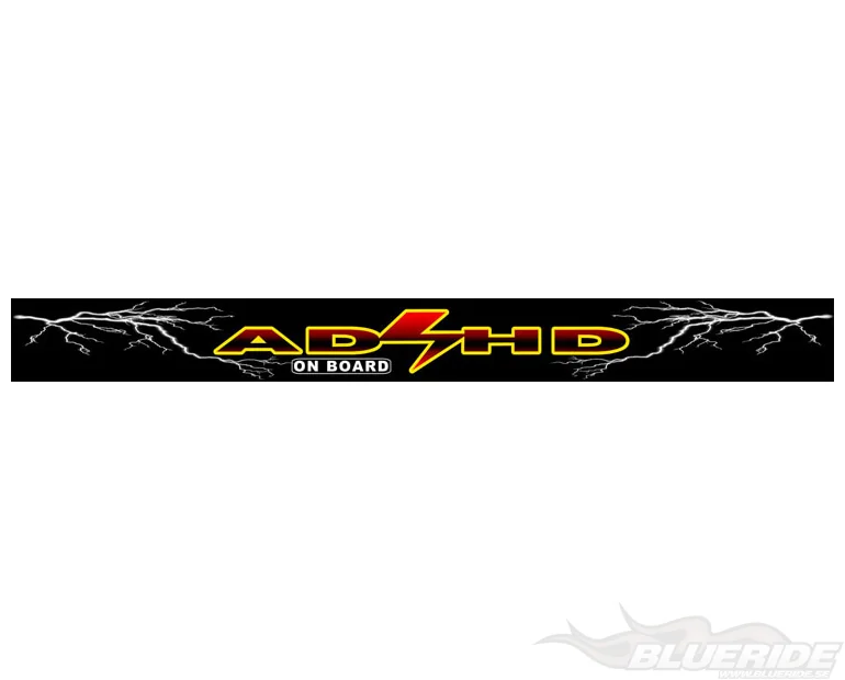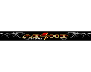 Snygg sun screener-/framrute-streamer med texten ″AD/HD on Board″.