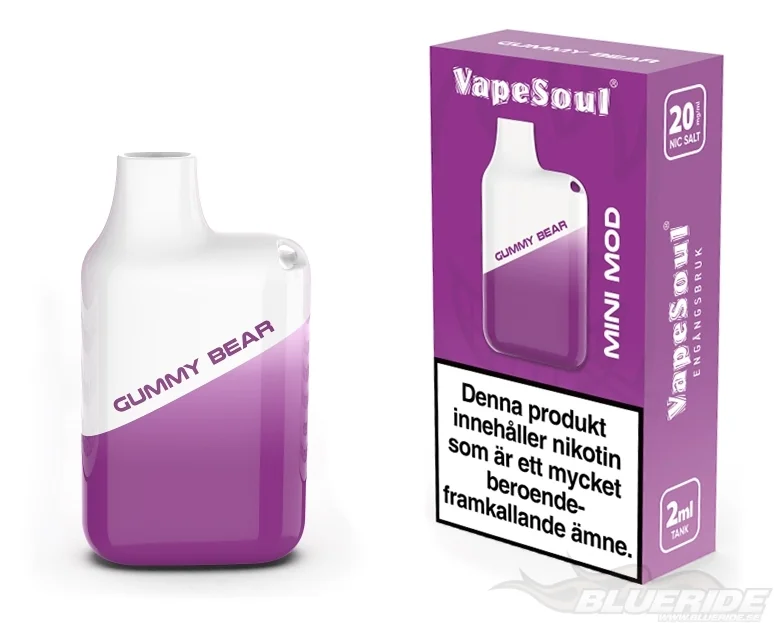 VapeSoul Mini Mod Gummy Bear är en snygg och trevlig engångsvape med 20 mg/ml nikotinsalt.