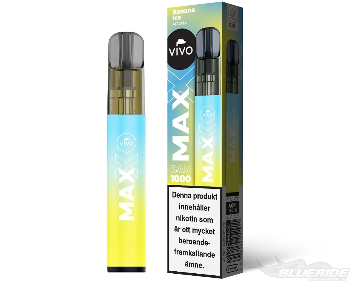 Vivo MAX Vape Banana Ice är en vape med naturligt smakfulla aromer i en välbalanserad blandning av banan tillsammans med en touch av menthol, som ger den en svalkande effekt. Den kylande effekten gör smaken extra frisk och fräsch.