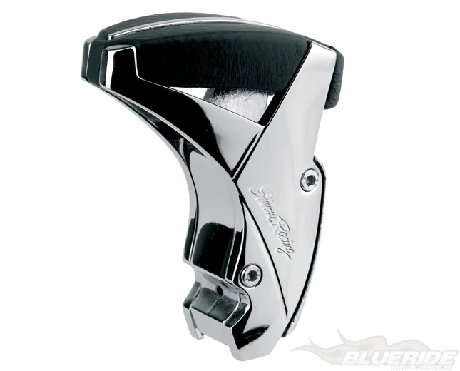 Snygg och sportig växelspaksknoppen som är är kromad och har inslag av svart mjukt läder.