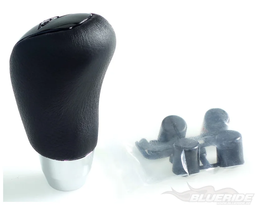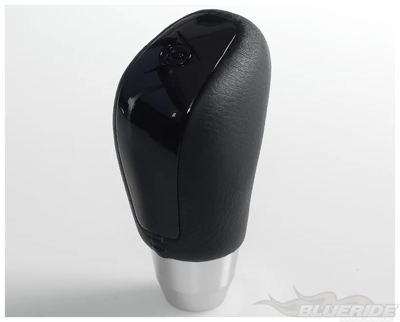 Stilig och sportig växelspaksknopp med äkta läder.