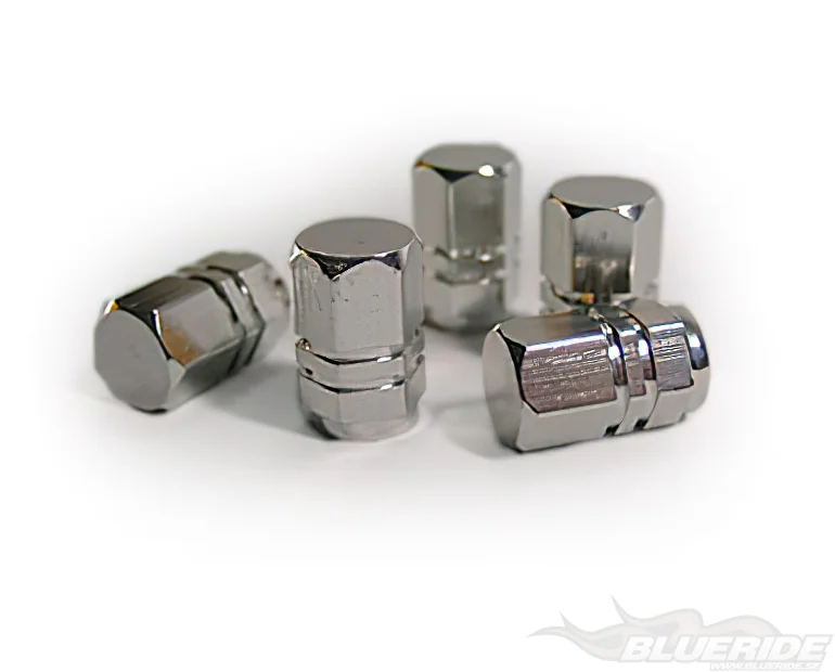 Sportiga silverfärgade ventilhattar i aluminium som skruvas fast på ventilen på däcken.